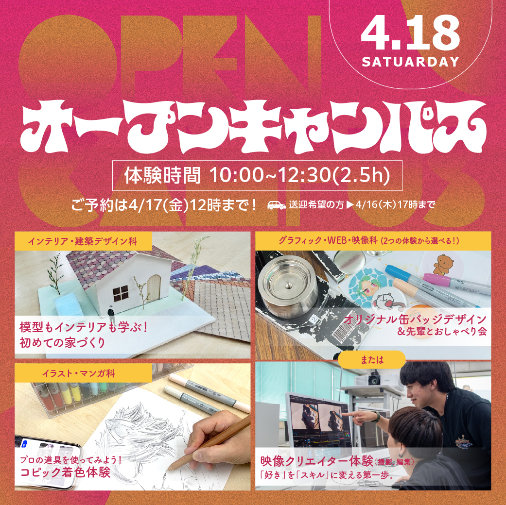 次回のオープンキャンパス 2026.04.11 sat -