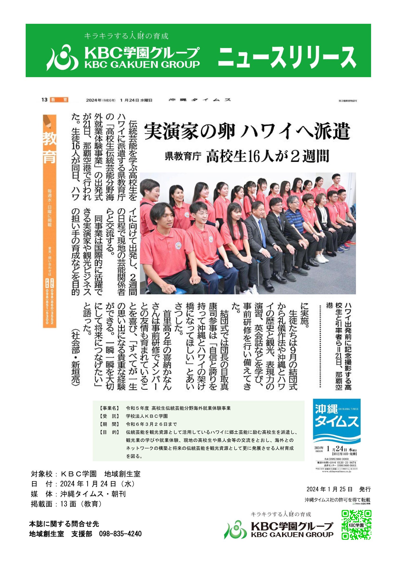 KBC学園の教育プログラムを伝統芸能分野の発展に!
