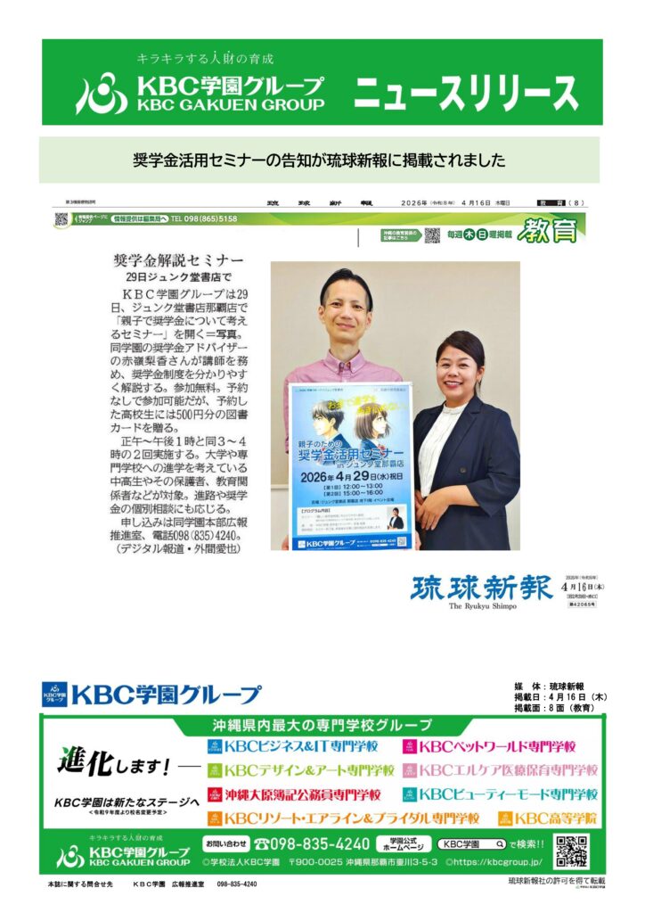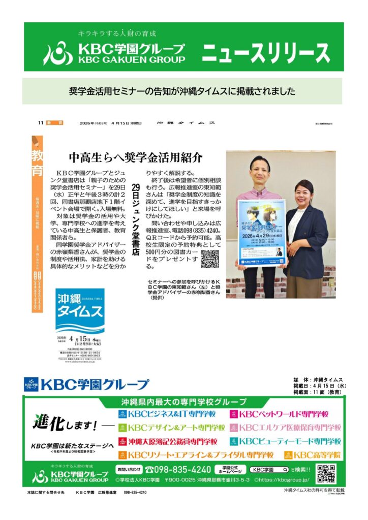 #教育 #沖縄タイムス #ジュンク堂書店 #奨学金 #KBC学園 #進学