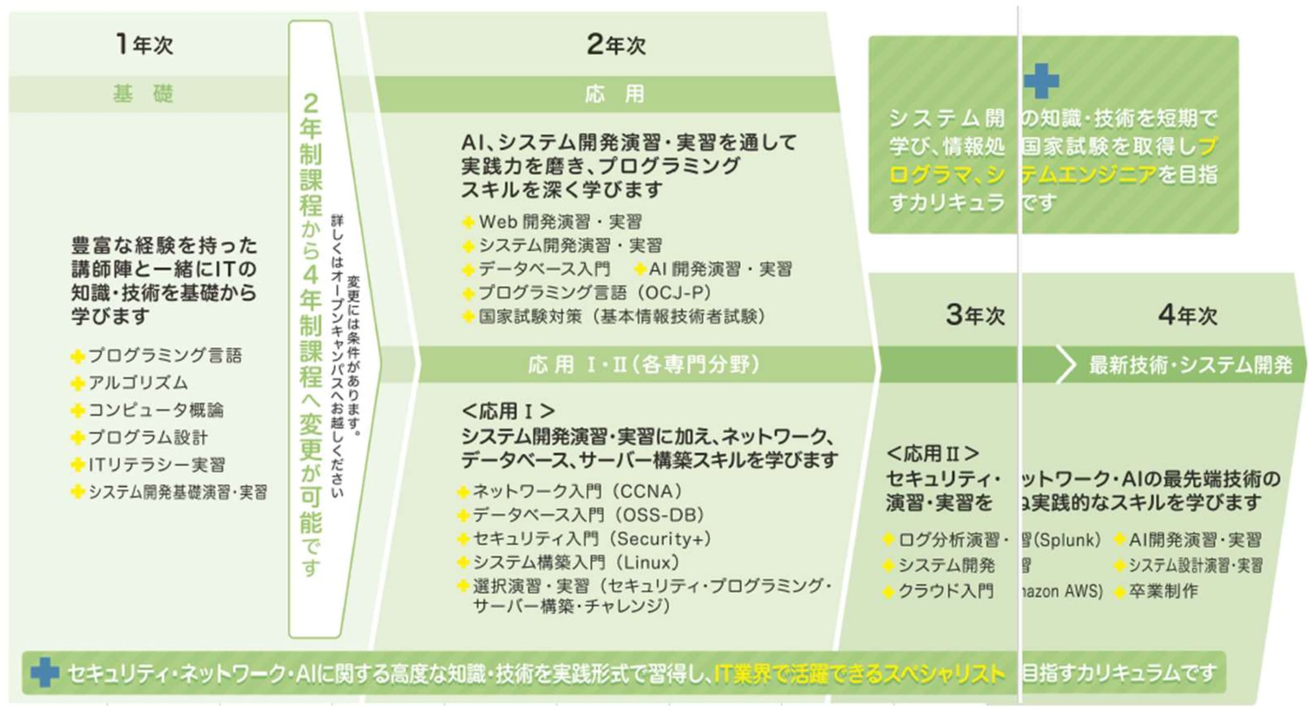 技術の基礎から応用までを網羅し、変化の激しい IT 社会において自ら課題を解決できるプロフェッショナルを育成します。