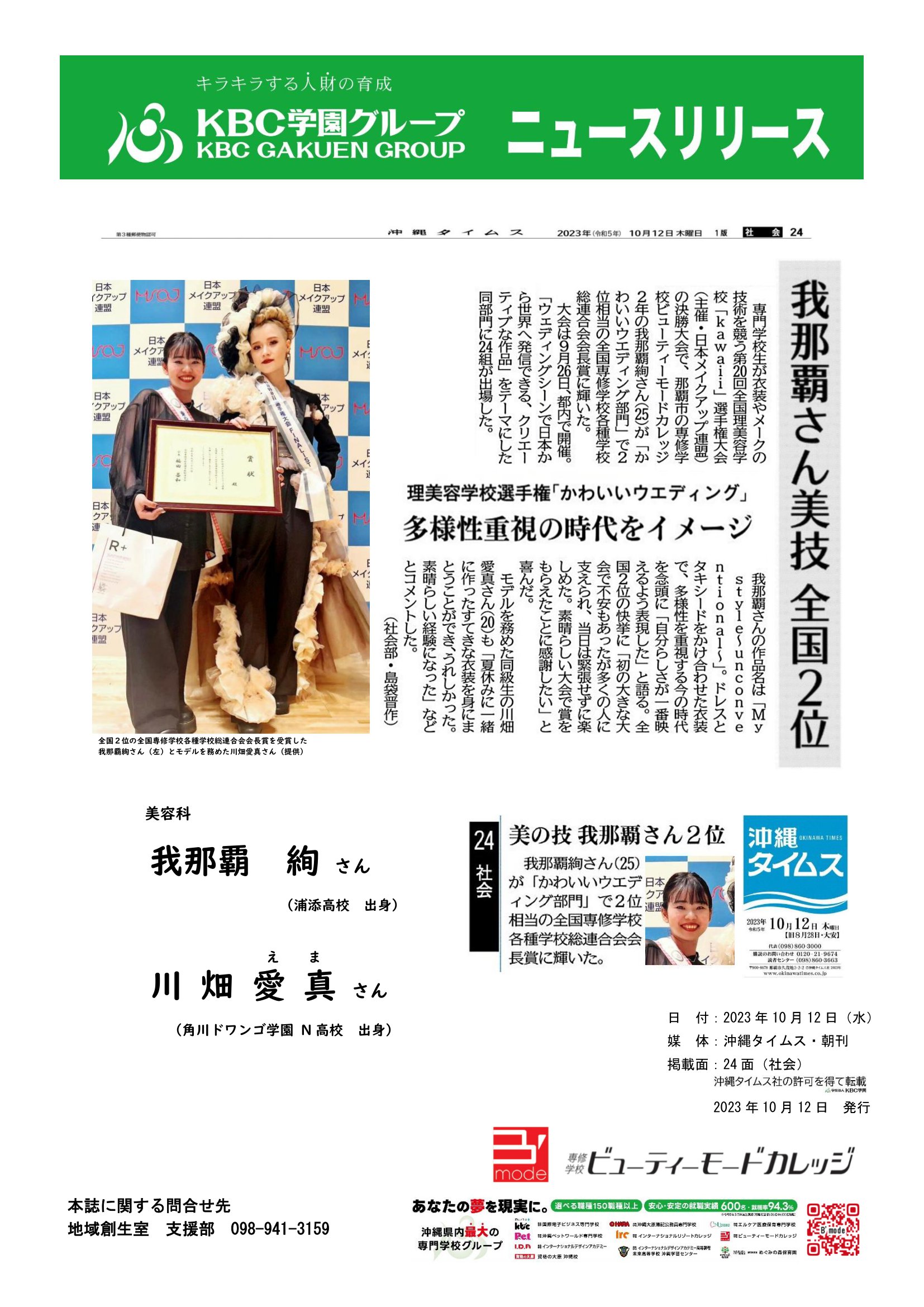 【学生情報】全国理美容「kawaii」選…