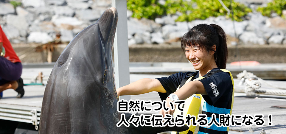 コンパニオンアニマル(ペット)だけでなく、動物園・水族館などで飼育されている大型動物を含めた動物全般の飼育管理ができる知識と技術を学びます。また、人・動物・自然との共生を考え、伝えることができる人財(人材)を育成します。