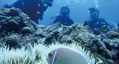 実際に海に潜りさまざまな生き物に出会います。
