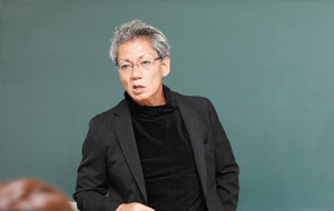 海洋生物の有名講師:藤田喜久先生の講義で、イノー実習と連携して調査方法や生物について学びます。