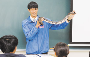 生体を使った実習も行いながら、爬虫類の飼育方法などを学びます。