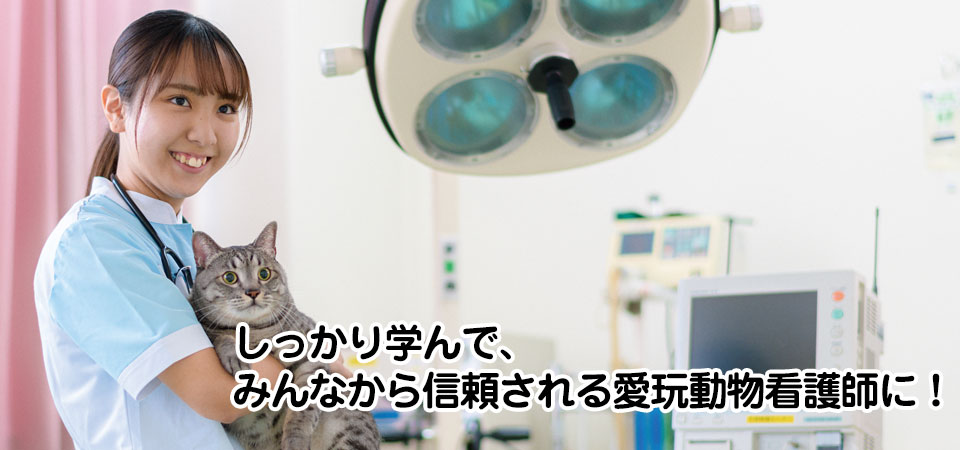県内唯一の愛玩動物看護師養成所です。愛玩動物看護師のカリキュラムを導入し、資格取得を目指します。
