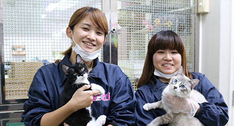 愛玩動物看護師が働く場はさまざまです。動物病院から動物保護施設、動物に関連する施設や企業で働くことができます。