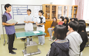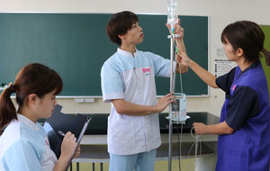 院内でのさまざまな場面の対応力を磨くため、実践に近い実習を行います。