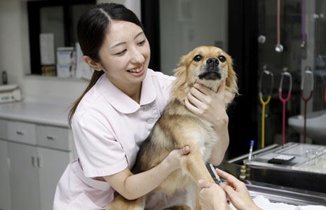 獣医師を補佐し、心と体に傷を負った動物の看護を担う愛玩動物看護師。本専攻では、動物医療における総合的な知識と技術を身につけ、動物と飼い主さまの心もサポートできる愛玩動物看護師を育成します。