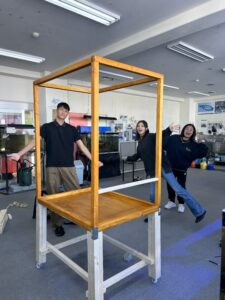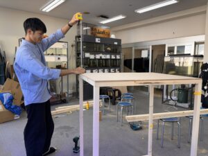 職員と力を合わせて新しい小屋を作成中です!
