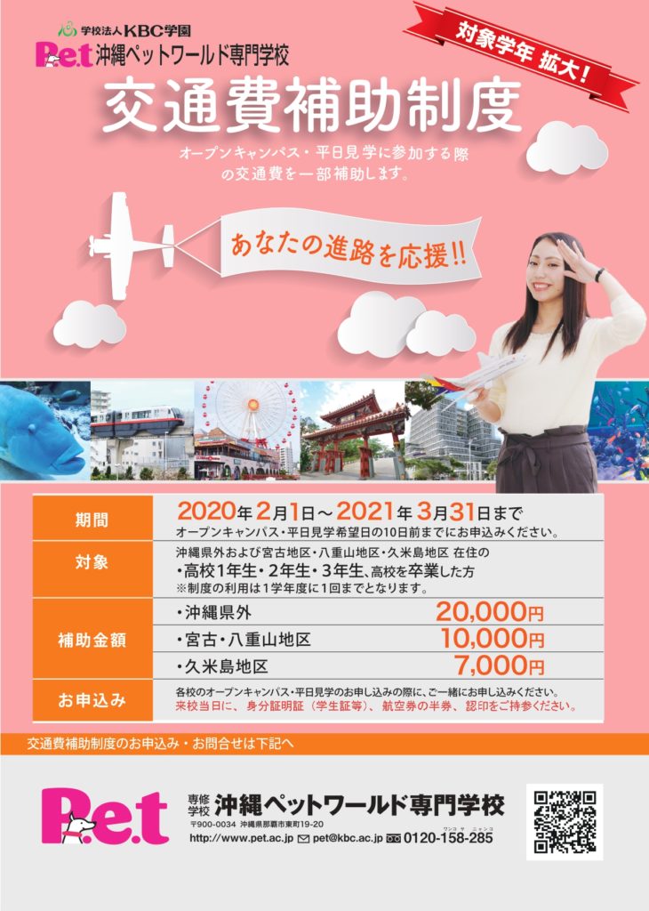 県外、沖縄県内離島の方を対象に交通費補助制度を行っています。