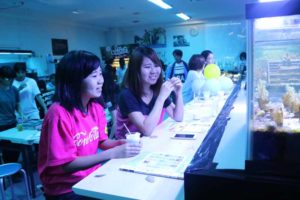 動物飼育・海洋生物専攻:アクアカフェ。水族館のようなアクアカフェで触れ合い体験、シーボーンアートつくり