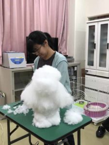 トリマー専攻:カットに挑戦!ハサミを使ってマネキンをカットしてみよう