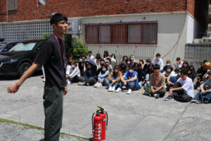 実際に火事が起きた前提で、初期消火、避難の順で行いました。