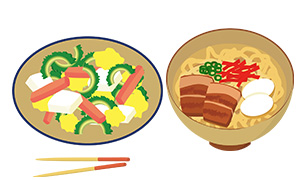 沖縄を代表する(沖縄そば・タコライス・ゴーヤー・ふーちゃんぷるー・しまどうふ・そーめんちゃんぷるー・もずく・てびち・etc)日常の食べ物は、ヘルシーでお手ごろで美味しいお店を探すのが楽しみです。もちろん、自炊するなら地元の先生達から作り方をならってチャレンジするのもいいでしょう。
