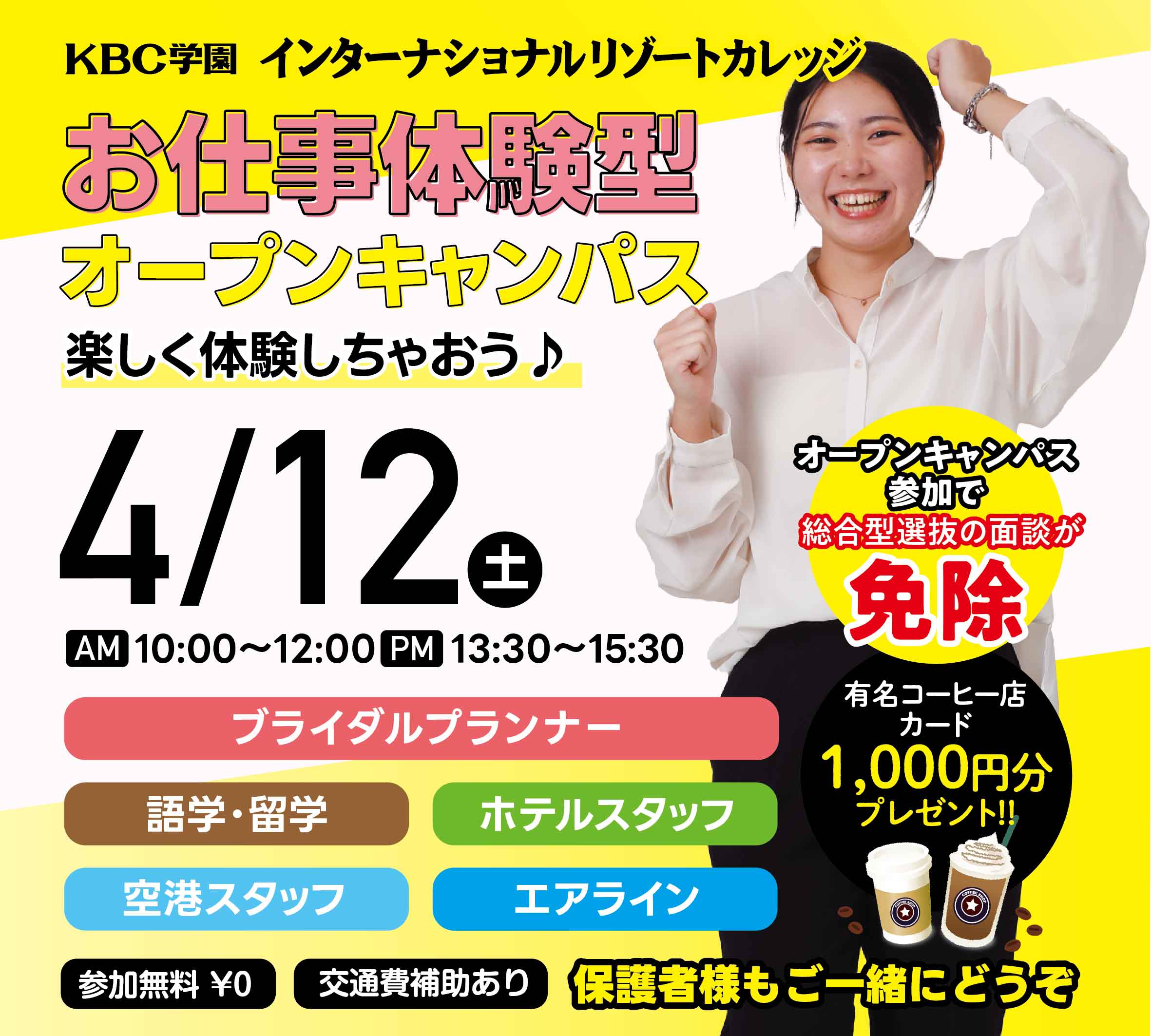 4月12日(土)学生スタッフと体験できるオープンキャンパス!