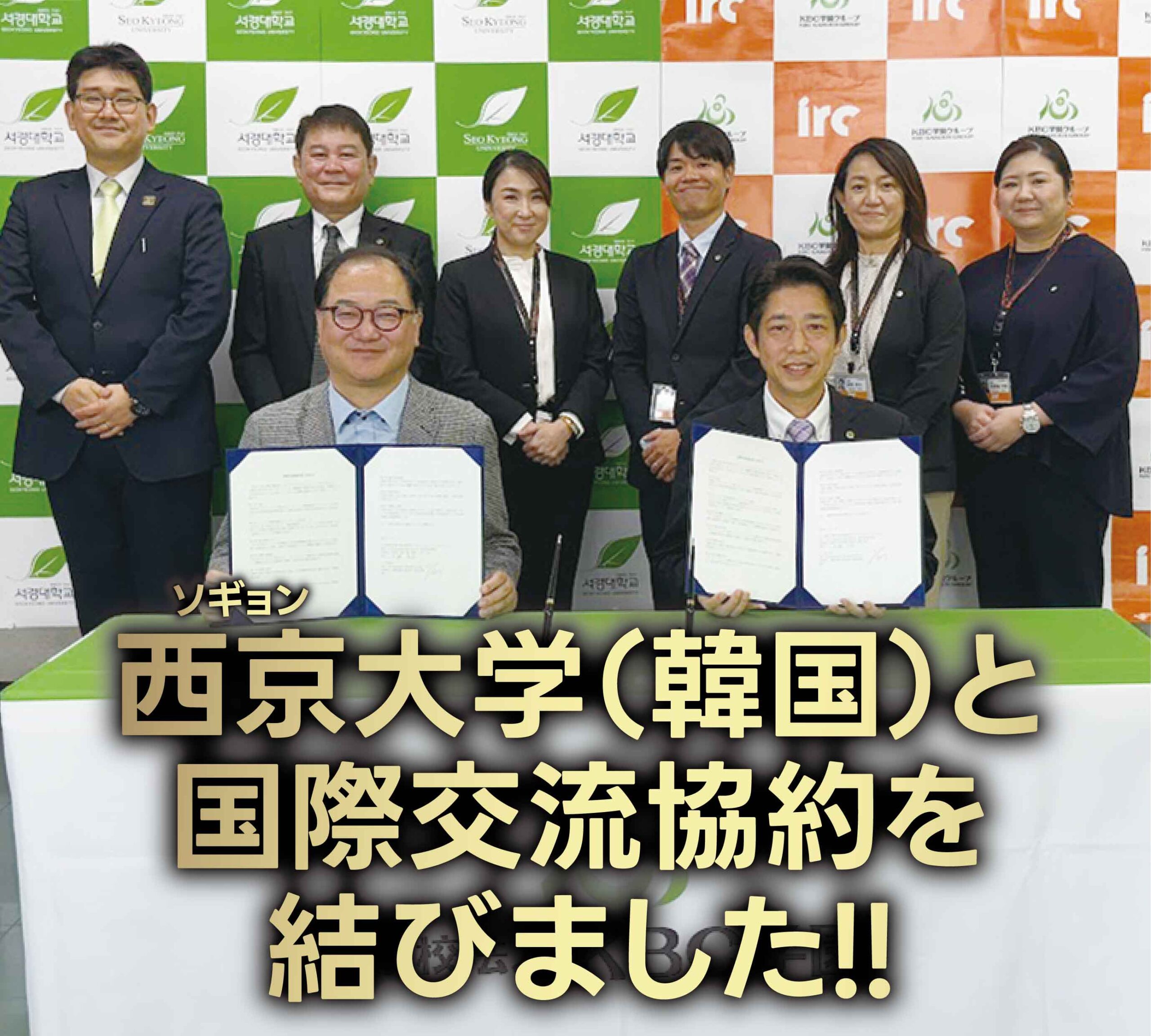 この度、韓国ソウルにある西京(ソギョン)大学とKBC学園インターナショナルリゾートカレッジが国際交流協約(MOU)を締結しました。この締結により、ircの学生たちは本校に2年間在籍した後、ソウルにある西京(ソギョン)大学3年次に編入をすることが可能となりました。ircで韓国語を中心に学び、TOPIK(韓国語能力検定)4級取得をすることで編入先の西京大学での奨学金も採用されます。将来は韓国語を活かした仕事がしたい、韓国で活躍したい方はぜひircの外語ビジネス科韓国語キャリアコースをよろしくお願いします。
