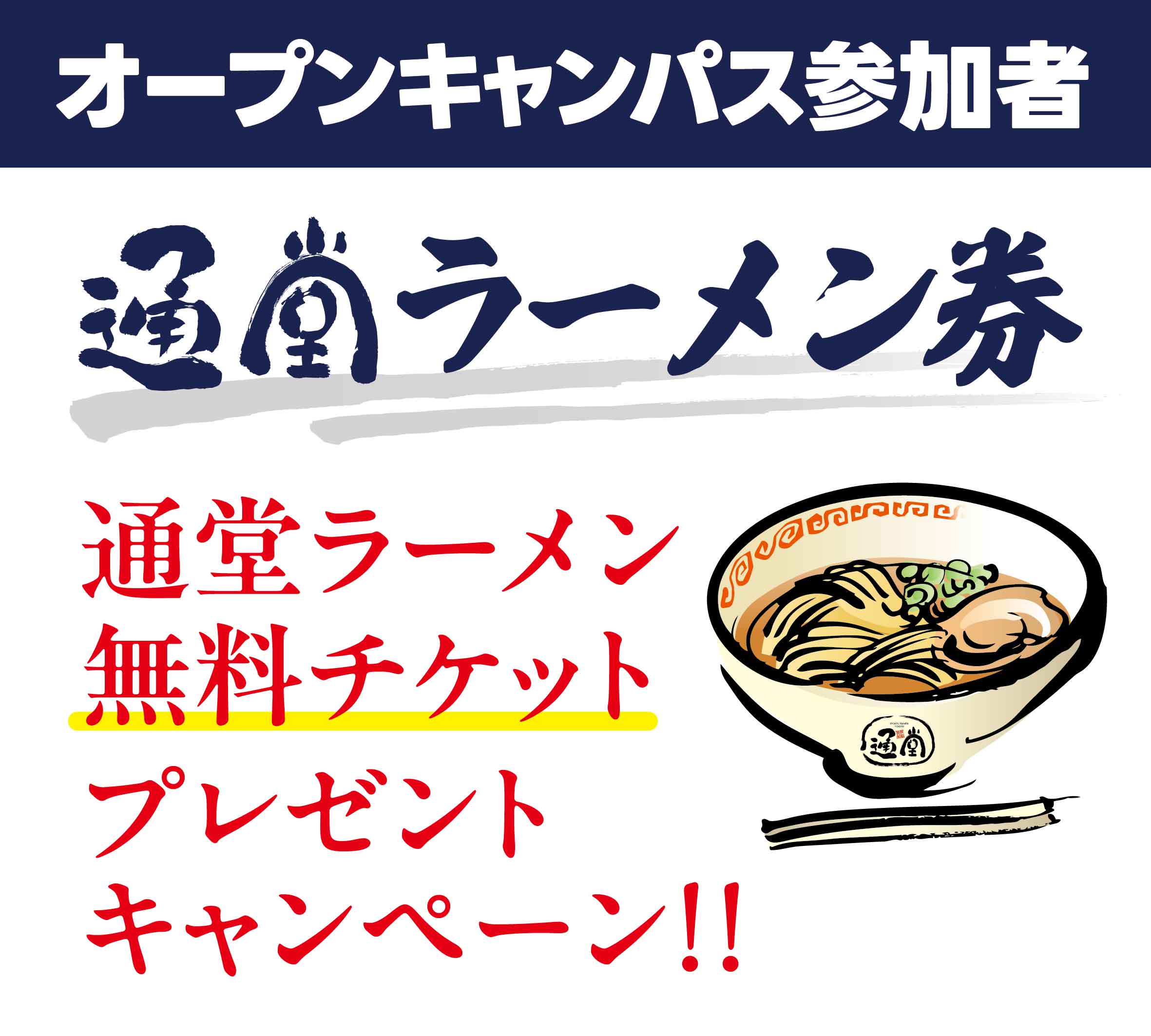 またオープンキャンパス参加された方は通堂ラーメン一杯無料券をプレゼントします(^^♪