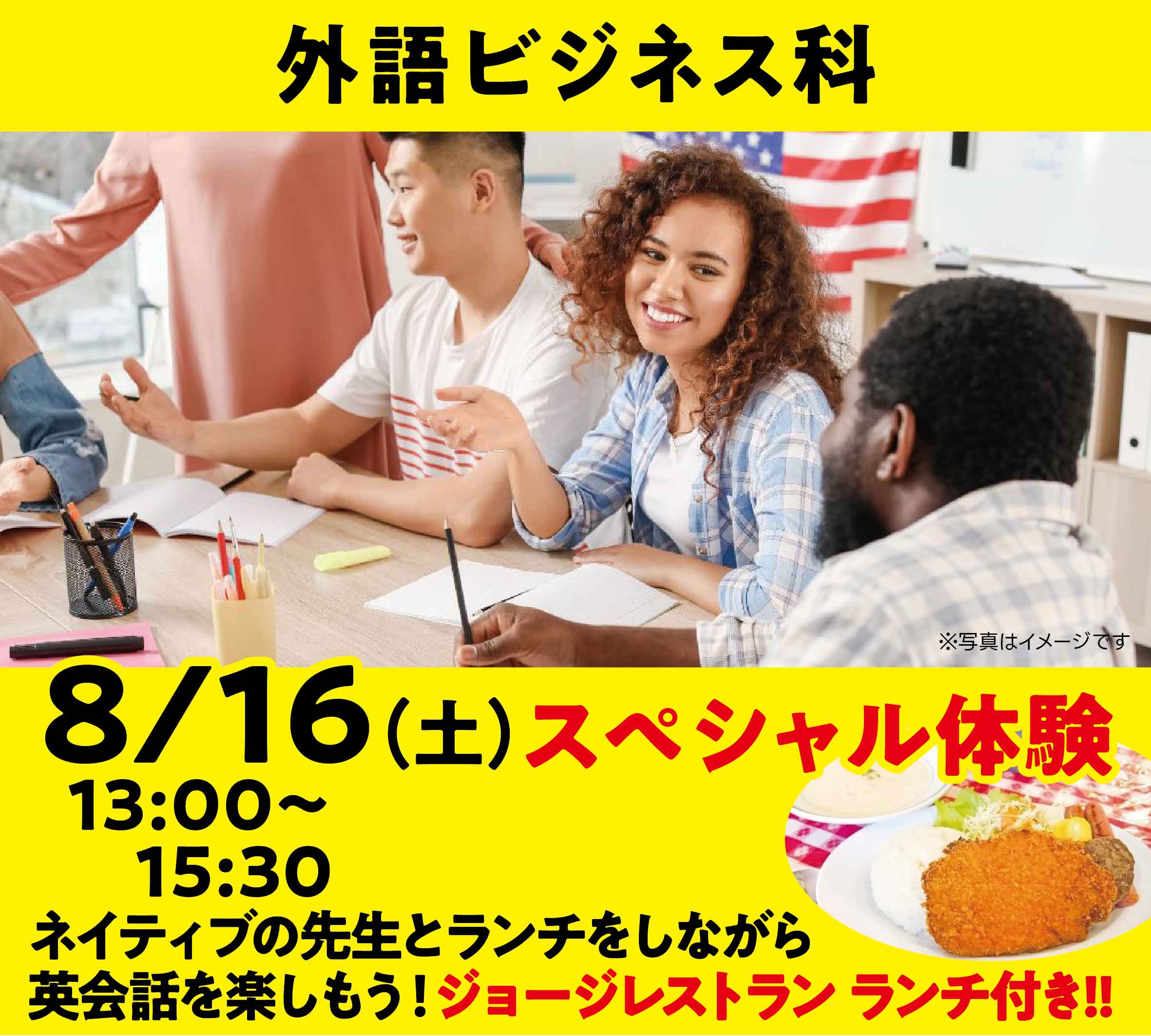 外語ビジネス科:ネイティブの先生とランチをしながら英会話を楽しもう! ジョージレストラン ランチ付き♪